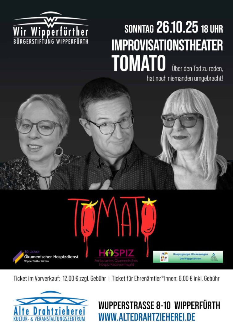Am Sonntag 26.10.25 veranstaltet das Hospiz einen Auftritt des Improvisationstheaters Tomato in der Alten Drahtzieherei…